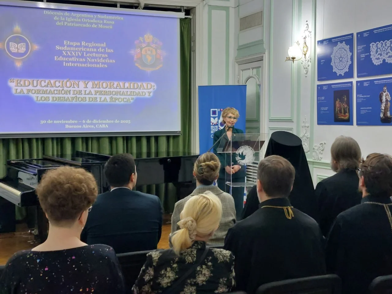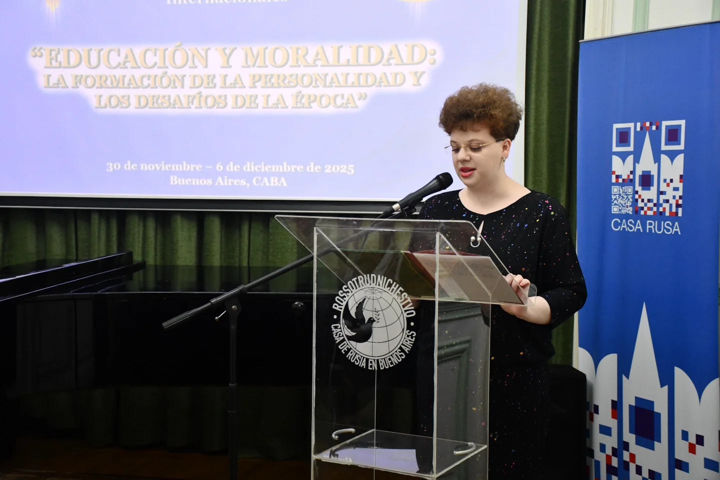 🇷🇺🇦🇷✨ El 30 de noviembre, en la Casa Rusa de Buenos Aires, la presidenta de la organización juvenil «Fénix», Elizaveta Petrenko, participó en la apertura de la etapa regional de las XXXIV Lecturas Educativas Internacionales de Navidad, realizadas bajo el lema: «Educación y moralidad: la formación de la personalidad y los desafíos de la época».