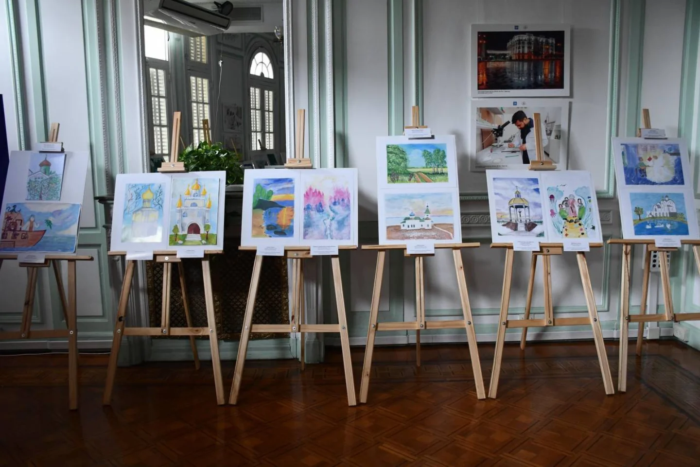 Después de la ceremonia oficial, los invitados pudieron admirar una exposición de obras de los ganadores y participantes del concurso internacional de arte infantil «La belleza del mundo de Dios».